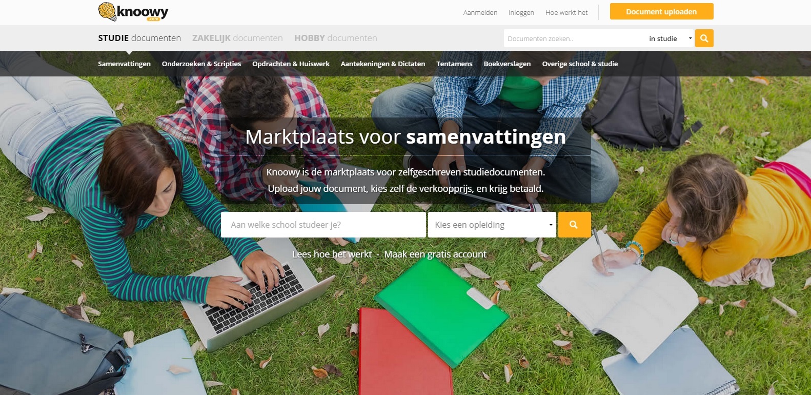 Extra geld verdienen tijdens je studie zonder enige inspanning of moeite. Wie wil dat nu niet? De website Knoowy maakt het mogelijk. Op Knoowy kunnen studenten hun samenvattingen en aantekeningen verkopen aan andere studenten door heel Nederland en België. Een bijzonder winstgevend initiatief voor de student die nog enkele samenvattingen van vorig blok heeft liggen, maar ook interessant voor diegenen die regelmatig een les missen.